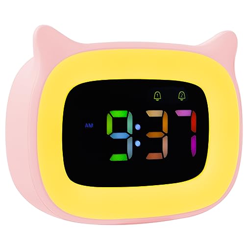 Seutgjie Upplyst väckarklocka för barn för tonåringar/flickor/pojkar, RGB 8 färger barnnattlampa, 18 ringsignaler och 2 larm, pedagogisk väckarklocka för barn 12/24 timmar med upprepningsläge (rosa)