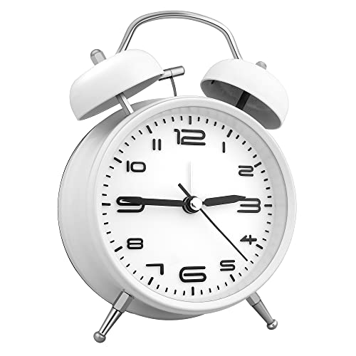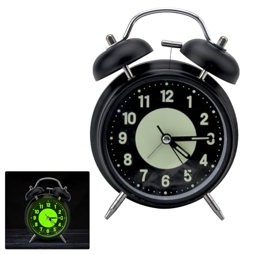 Väckarklocka analog utan tickande ljudlös, retro dubbel klocka väckarklocka med nattlampa och grön fluorescerande stor urtavla, väckarklocka batteridriven, väckarklocka för djupsömnare, barn, seniorer