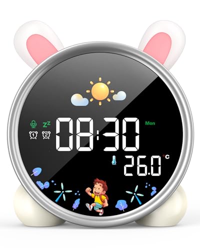 Lemnoi Barn Väckarklocka, Barnklocka Utbildningsklocka, Sömnträningsklocka, Barn Morgonklocka Med Nattljus, Snooze, OK att Vakna, Sömnmusik, Dubbel Alarm, Timer, Nedräkning, Temperatur,Kanin