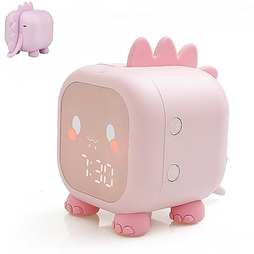 BBABBT väckarklocka för barn – söt digital väckarklocka med dinosaurie, för barn, sängklocka, sömntränare, vakna ljus och nattlampa, bästa presenten till barn (rosa)