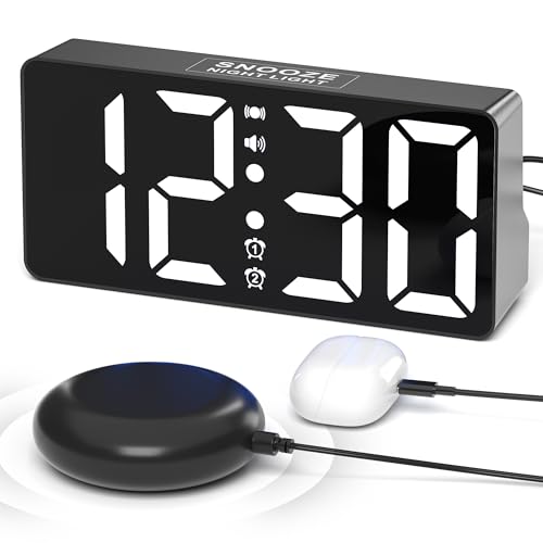 ANCLLO Vibrationsväckarklocka under kudde, sängskakare, larm, vibrerande väckarklocka, tyst digital tyst tyst klocka, väckarklocka för tunga sovande, döva människor