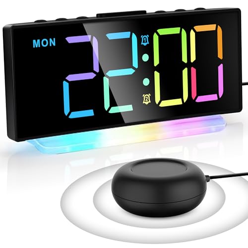 Extremt Hög Vibration Väckarklocka Med Sängskakare för Döva/Djupsovare/Hörselskadade, RGB-Färgad Digital Väckarklocka för Barn Sovrum, Stora Siffror/USB-Laddare/Nattlampa/Batteribackup