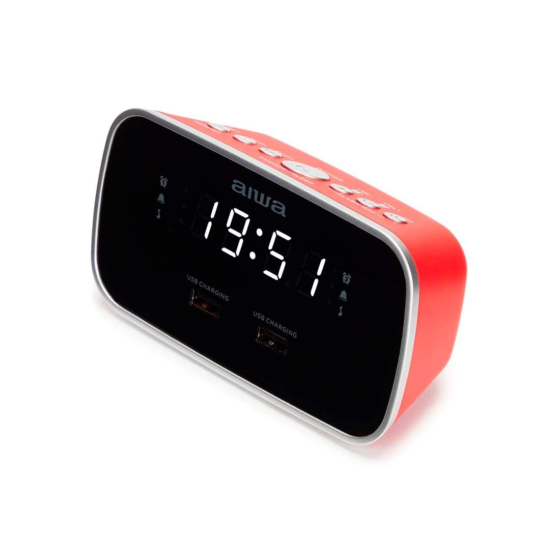 Väckarklocka med dubbla larm och USB-laddning - Röd