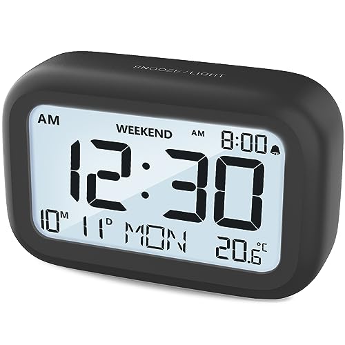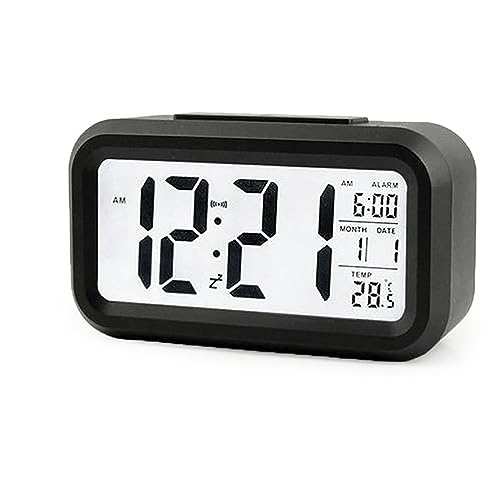 WANGCL 12/24 timmars digital väckarklocka, sängbordsklocka med bakgrundsbelysning LCD-display datumkalender och temperaturvisning (svart