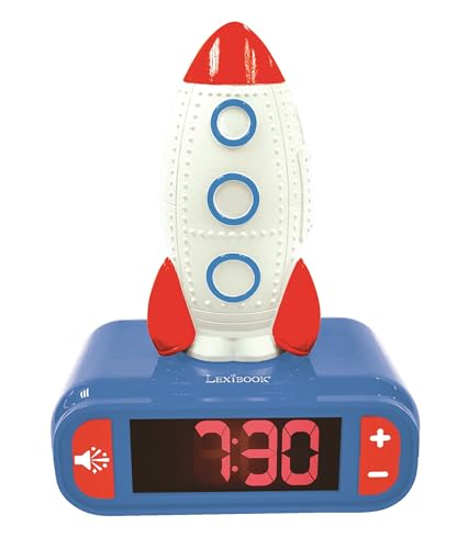 LEXIBOOK, raket, nattljus väckarklocka, ljud och melodier, LCD-bakgrundsbelyst skärm, lysande, snooze, blå, RL800SPCLXB
