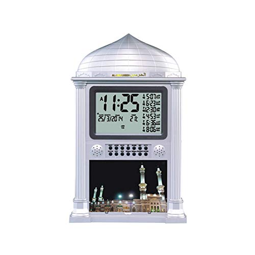 Stor muslimsk azan väckarklocka, LCD-display islamisk bön hem kontor Masjid moské digital dekorativ väggklocka, silver