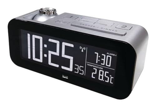 MeesMeek Projektion väckarklocka för sovrum: Digital LCD-skärm med temperaturdatum snooze 12/24 h och helgläge, lätt inställd dimmerklocka med 2 nivåer volym, elnätet och batteridrift