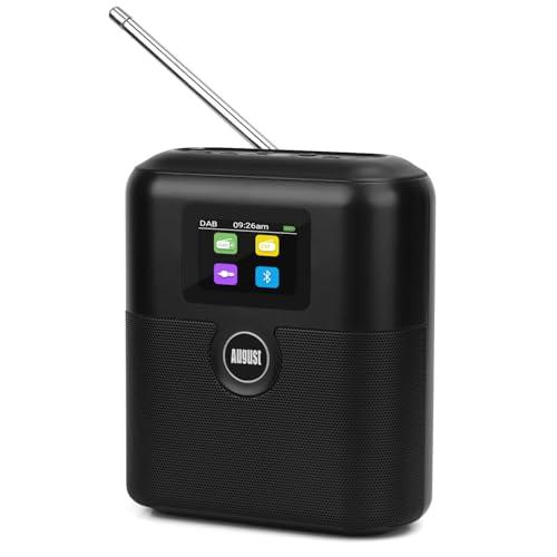 August MB330-Bärbar DAB+ Radio Uppladdningsbar-DAB FM Radio med RDS,60 förinställda stationer,Bluetooth-högtalare,3,5 mm AUX,dubbel väckarklocka och LCD-skärm,teleskopisk antenn eller Auto-Scan-Svart