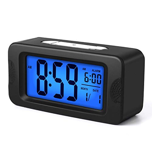 Plumeet Digital väckarklocka, lyser upp hela natten, 4-tums LCD-display som visar tidslarmdatum, sängklockor med snooze för sovrums kök Kontorsbatteri (svart)