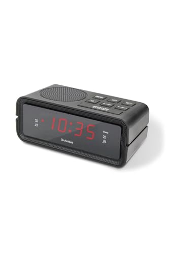 TechniSat DIGICLOCK 2 - kompakt FM väckarklocka radio två väckarklockor, snooze-funktion, justerbar LCD-display, nät- eller batteridriven, svart