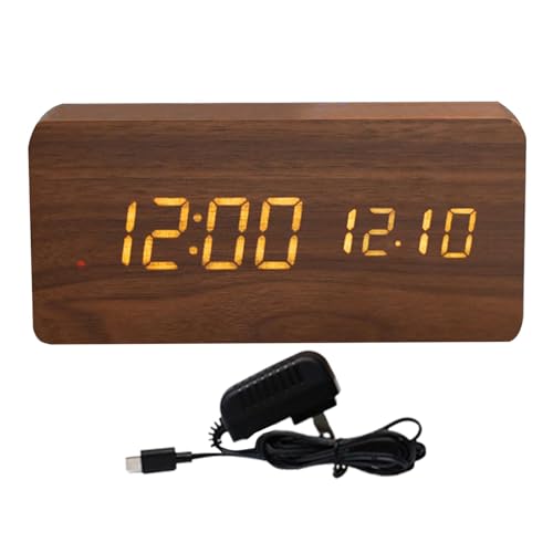 Nuyhgtr LED-klocka digitalt trä, digital väckarklocka för sovrum, justerbar ljusstyrka LED-klocka, trä digital klocka för sängen, LED digital väckarklocka, modern LED-väckarklocka