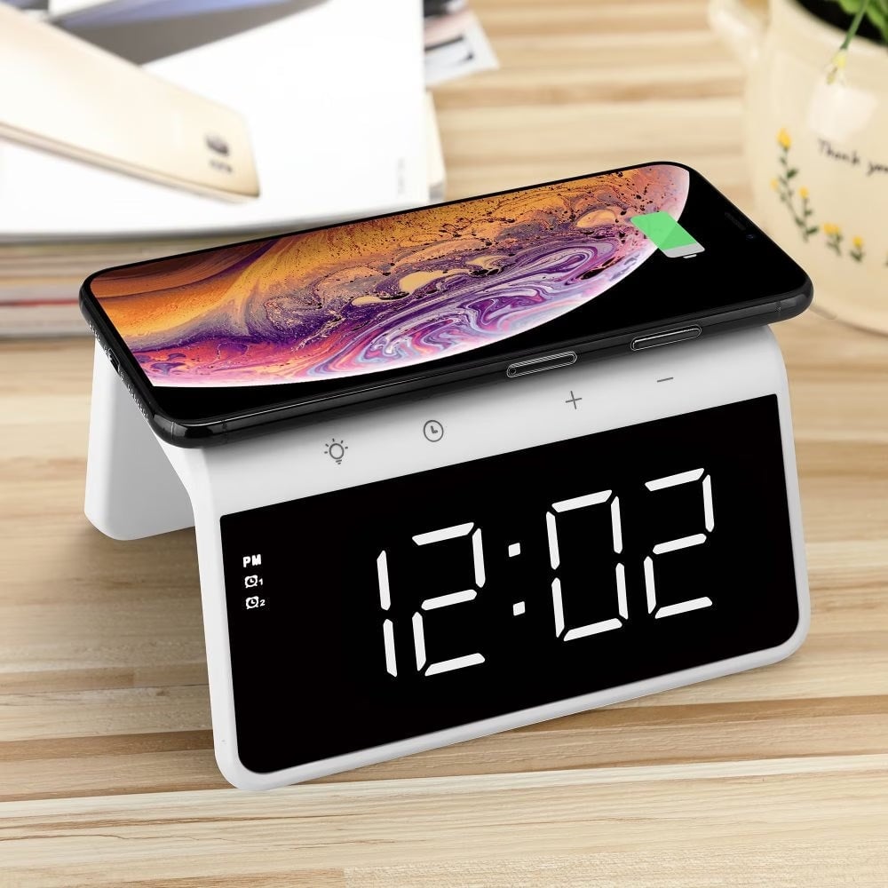 COLSUR 3-i-1 trådlös laddningsstation med väckarklocka och nattlampa 18W
