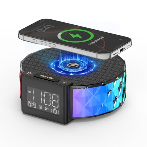 Wenosda Digital väckarklocka, digital Bluetooth-ljudväckarklocka – 9 färger nattlampa, Bluetooth-högtalare, trådlös laddare för iPhone/Samsung, temperaturvisning LED-display
