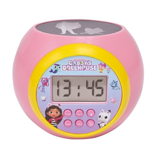 LEXIBOOK, Gabbys dockhus, väckarklocka-projektor med larm och snooze-funktion, nattlampa med timer, LCD-skärm, batteridriven, rosa, RL977GDHLXB
