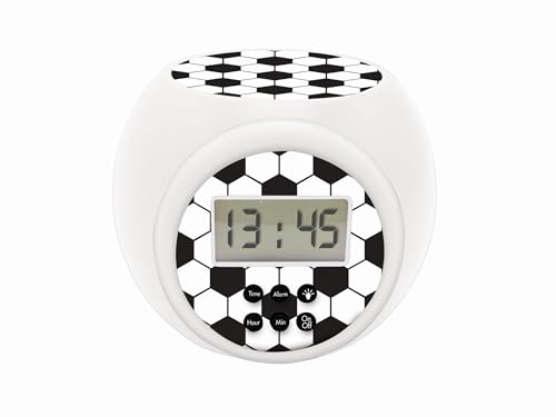 LEXIBOOK Projektor väckarklocka fotboll med snooze-funktion och larmfunktion, nattlampa med timer, LCD-skärm, batteridriven, vit/svart, RL977FOLXB