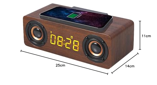 Digital Väckarklocka med trådlös laddning i betsat mörkt trä, snooze, tid/datum