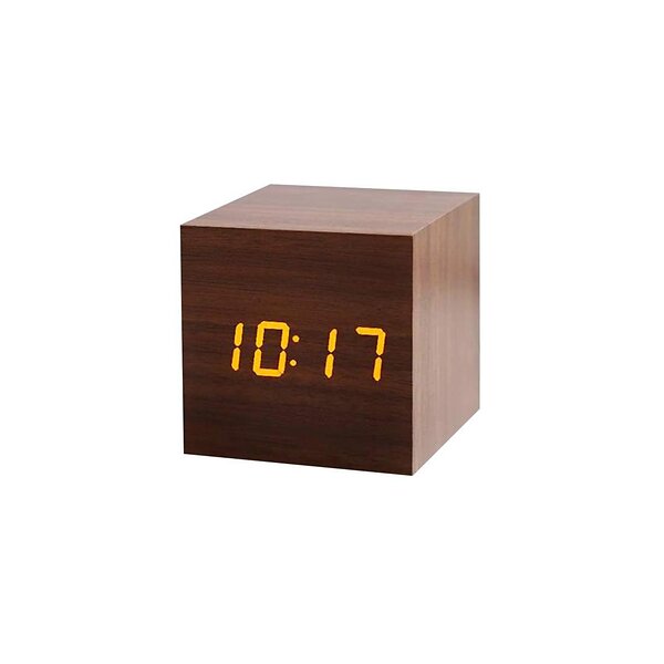 Northix Digital Alarmklocka, Kvadratisk Brun med Gula Siffror