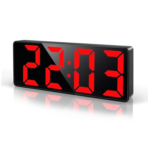 Lafocuse LED-väckarklocka, digital med stora siffror, bordsklocka, digital typ-C/batteridriven med snooze, justerbar ljusstyrka, 12/24 HR för nattduksbord, sovrum, kontor, röd