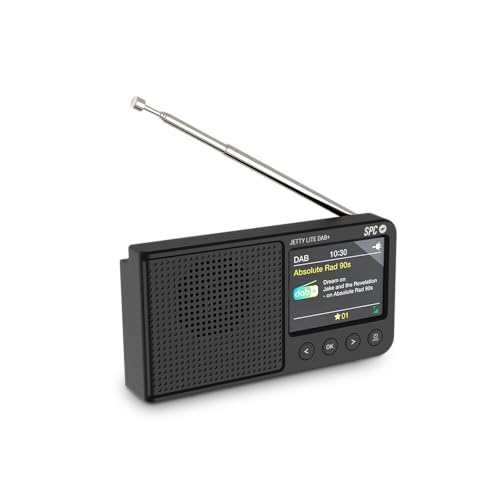 SPC Jetty Lite DAB+ | DAB+/FM RDS bärbar radio | 80 förinställda stationer | 2,4 tum TFT-färgskärm | Bluetooth och hörlursuttag | Upp till 7 timmars batteritid | väckarklocka och snooze-funktion