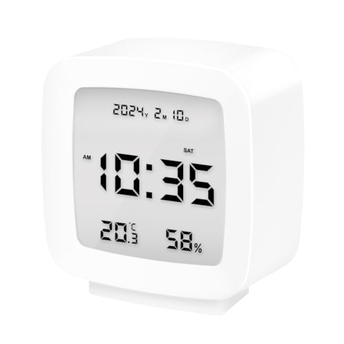 EMOS – digital termometer och hygrometer – bärbar termohygrometer – inomhusluftövervakning – inomhustermometer med inomhusfuktighetsvisning, tid, väckarklocka med snooze och kalender – vit