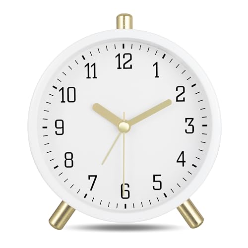 Lafocuse klassisk metall väckarklocka analog utan tickande, mjölkvit tyst väckarklocka med ljus, modern enkel dekoration bordsklocka sovrum sängbord 11 cm