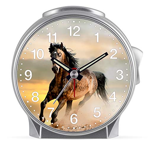 Eurotime barnväckarklocka för flickor med hästmotiv, plasthölje och plastglas, tyst väckarklocka, inget tickande, med ljus och väckning, 29624-07