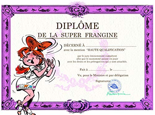Gaston Lagaffe Diplom karta över Super Frangine syster – Mlle Mademoiselle Jeanne vacker klänning – för flickor kvinnor
