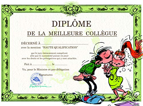 Gaston Lagaffe Dubbelkort med kuvert diplom av den bästa collègue – vänskap Bise Mlle Mademoiselle jeanne vacker klänning – för flickor kvinnor GLDP-7018