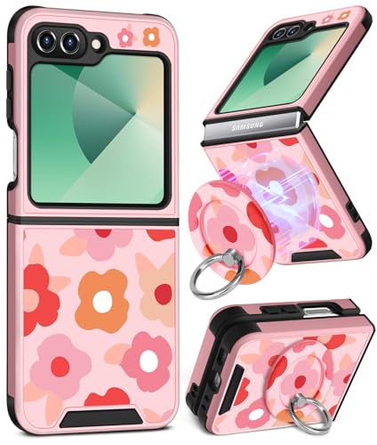 Buleens för Samsung Galaxy Z Flip 6 fodral – med ringstativ och kameraskydd estetiskt sött designat kvinnor flickor Kawaii vackra flickiga blommiga blommor för Galaxy Z Flip 6 telefonfodral kompatibel