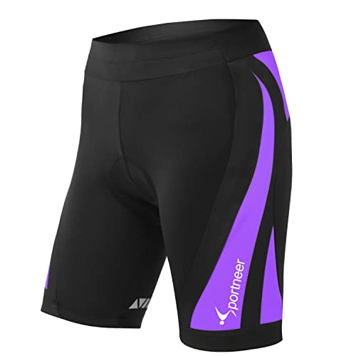 Sportneer Cykelbyxor dam, vadderade snabbtorkande cykelbyxor dam, korta elastiska cykelbyxor dam med sittdyna 4D cykelsportshorts, korta sportbyxor dam med bredare och tätare stoppning