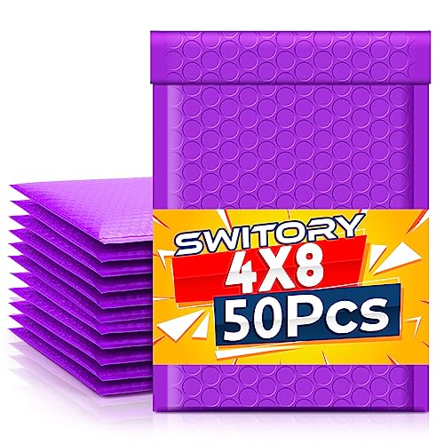 Switory 50 st 10,2 x 17,7 cm (4 x 7 tum) bubbelkuvert i polyester, vadderade kuvert, #000, bubbelfodrade kuvert, självförseglande (lila)