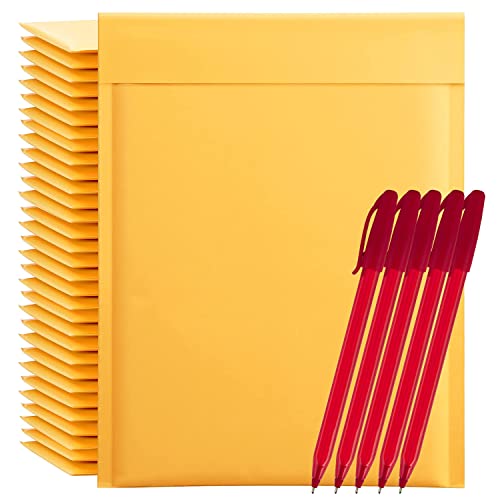 Vadderade kuvert x 100 stora bubbelkuvert med post – ger utmärkt skydd vid leverans – postväskans mått (29 x 37 cm) plus 5 kulspetspennor med blå bläck