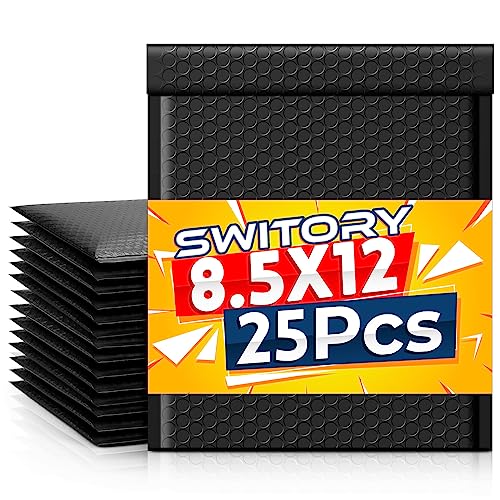 Switory 25 stycken vadderade kuvert 21,6 cm x 32 cm poly bubbelmailer självtätande vadderade kuvert bubbelfodrad poly mailer för förpackning (svart)