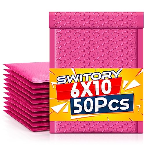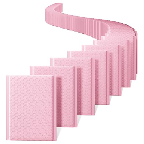 Switory Vadderade kuvert i A5-format, 50 stycken, 15,3 cm x 22,9 cm (6 x 10 tum), rosa bubbelkuvert i polyeten, små bubbelkuvert, vadderade och fodrade kuvert, självförsegling, för förpackning