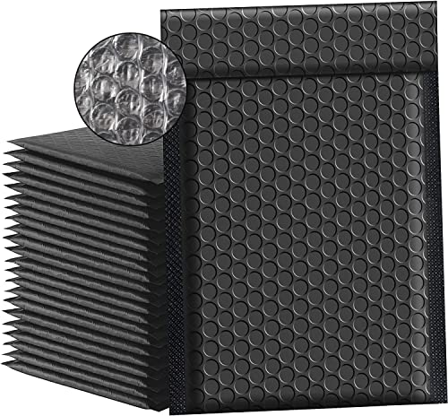 Switory 25 st 15,2 x 22,9 cm (6 x 9 tum) A5 bubbelkuvert i polyester, vadderade kuvert i storpack, #0, bubbelfodrade plastpåsar för frakt, förpackning, post, självförseglande (svart)