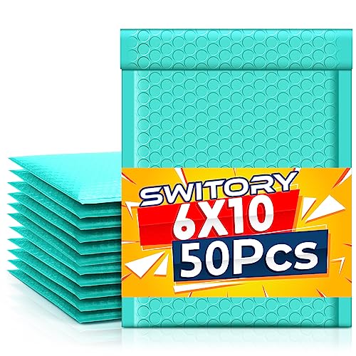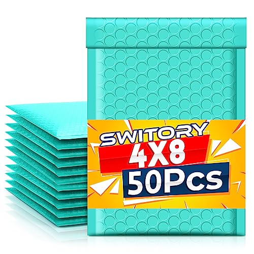 Switory 50 st 10,2 x 17,7 cm (4 x 7 tum) bubbelkuvert i polyester, vadderade kuvert, storpack, #000, bubbelfodrade plastpåsar för frakt, förpackning, post, självförseglande (blågrön)