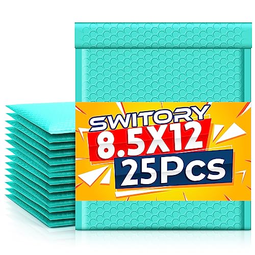 Switory 25 st 21,6 cm x 28 cm Poly-bubbelkuvert, vadderade kuvert, bubbelfodrade, självförseglande poly-kuvert (blågrön, lila)
