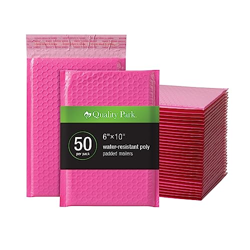 Quality Park bubbelkuvert, 6 x 9 fraktkuvert, vattentåliga rosa poly vadderade kuvert, Redi-Strip Peel Off-stängning, 50 per låda (QUA85858)