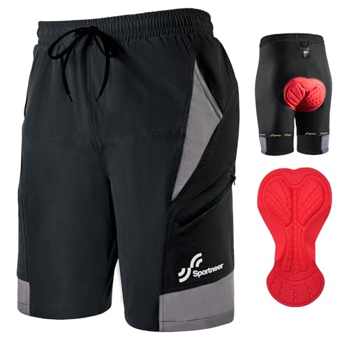 Sportneer MTB-shorts för män, MTB-shorts, vadderade cykelshorts för män, 3D vadderade mountainbike, shorts, MTB, cykelsport för utomhuscykling