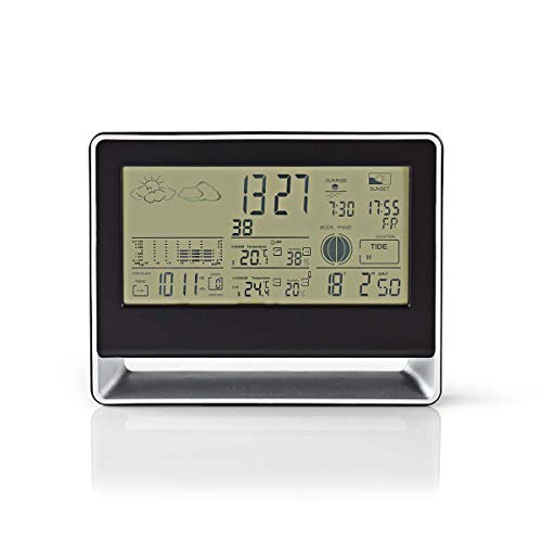 Nedis - Väderstation - Trådlös sensor - Väckarklocka - Väderförutsägelse Inomhus och utomhus - Smal och elegant - 2 x AA-batterier - 433 MHz frekvenssignal - Medföljande 230 V-adapter - Svart