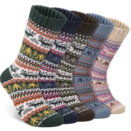 Beaulov 5 par ullstrumpor för män varma vinterstrumpor vintage stil mjuka ullstrumpor andas tjocka varma vadstrumpor för vinter, Grön/mörkblå/brun/ljusblå/sand, one size