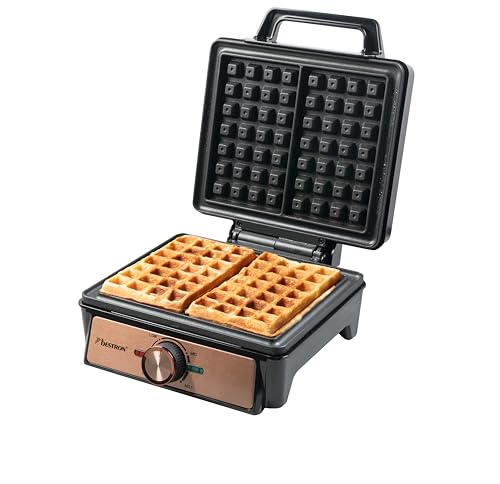 Bestron Våffelmakare för belgiska våfflor, Bryssel våffeljärn för två tjocka våfflor, med non-stick-beläggning och Cool Touch-handtag, kopparkollektion, färg: Koppar