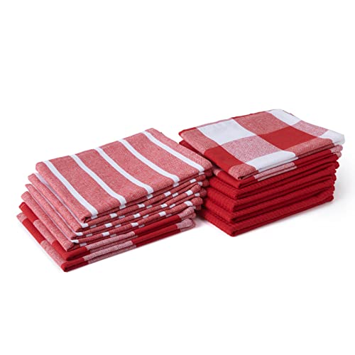 Encasa kökshanddukar - kökshanddukar X-Large 70 x 45 cm (12 st set våfflor, rand, rutig) bomull, mycket absorberande teatowel för snabb rengöring och torkningsplattor och glas - röd