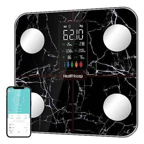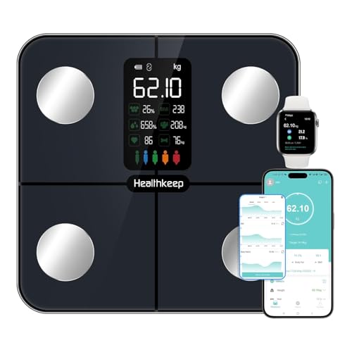 Healthkeep Kroppsfettvåg personlig våg digital våg med kroppsfett och muskelmassa för 15 kroppsdata pulsmätare personer med stor VA-skärm med app för iOS och Android