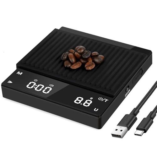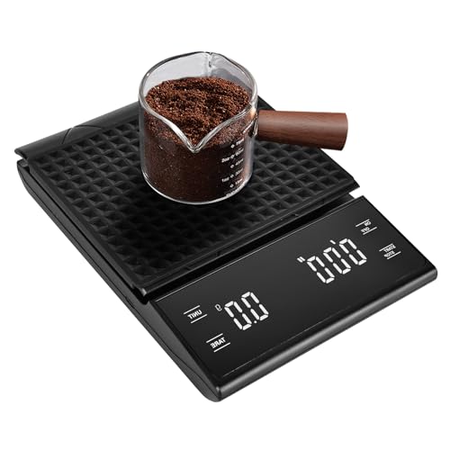 WIYETY Digital kaffevåg med timer: Uppladdningsbar kaffevåg med 0,1 g hög precision, espresso-våg med LED-display och tar-funktion, köksvåg, för filterkaffe, max. Vikt 3 kg