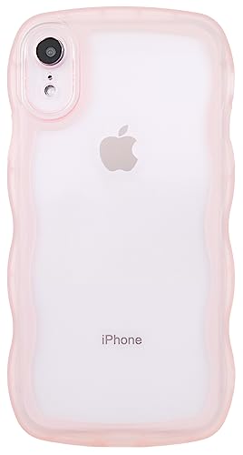 Skylmw Kompatibel med iPhone XR-fodral 6,1 tum, söt Kawaii lockig våg ramform mjuk silikon stötsäker skyddande telefonskydd för kvinnor flickor, klar/rosa