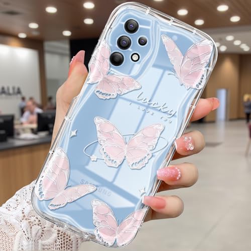 CASBST Kompatibel med Samsung Galaxy A32 5G fodral, vackert fjärilstryck tredimensionell våg klart fodral för flickor kvinnor, mjukt helpaket fallskydd för Galaxy A32 5G, rosa fjäril