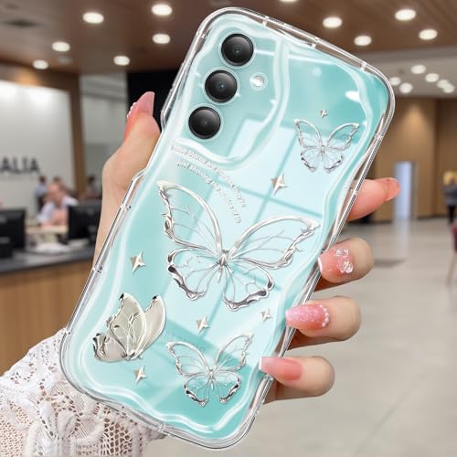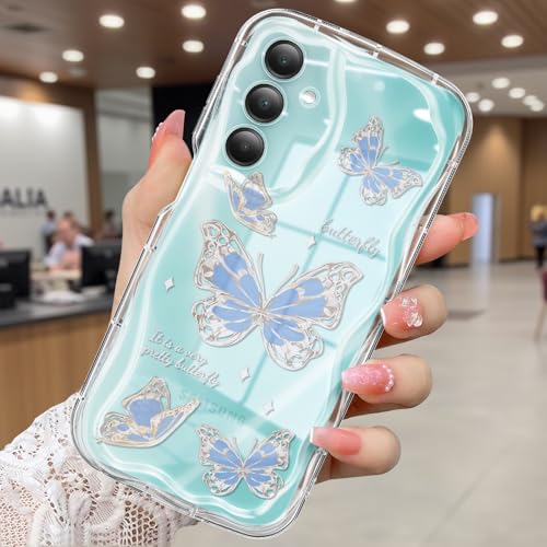 CASBST Kompatibel med Samsung Galaxy A16 5G fodral, vackert fjärilstryck tredimensionell våg klart fodral för flickor kvinnor, mjukt helpaket fallskydd för Galaxy A16 5G, vattenblå fjäril