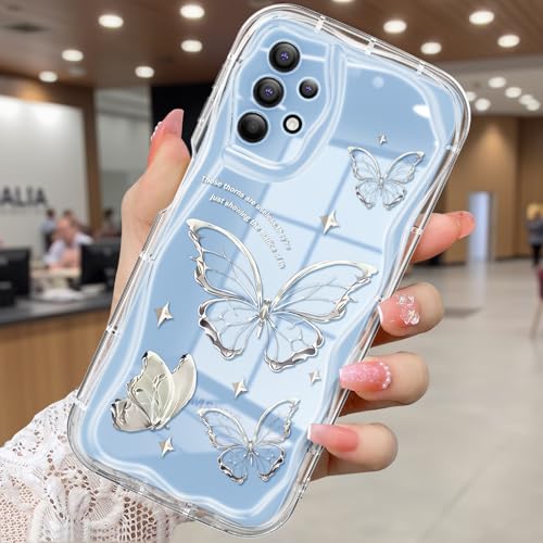 CASBST Kompatibel med Samsung Galaxy A32 5G fodral, vackert fjärilstryck tredimensionell våg klart fodral för flickor kvinnor, mjukt helpaket fallskydd för Galaxy A32 5G, silverfjäril