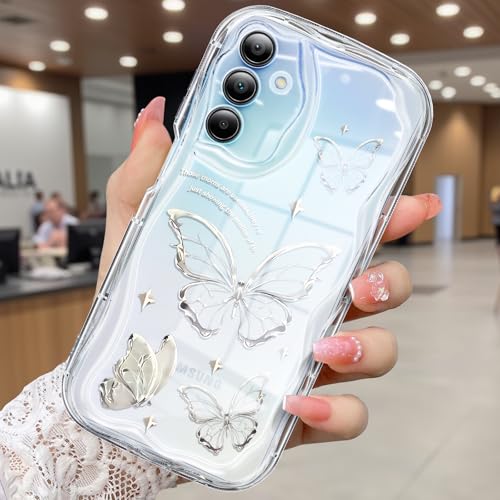 CASBST Kompatibel med Samsung Galaxy A15 5G fodral, vackert fjärilstryck tredimensionell våg klart fodral för flickor kvinnor, mjukt helpaket fallskydd för Galaxy A15 5G, silverfjäril